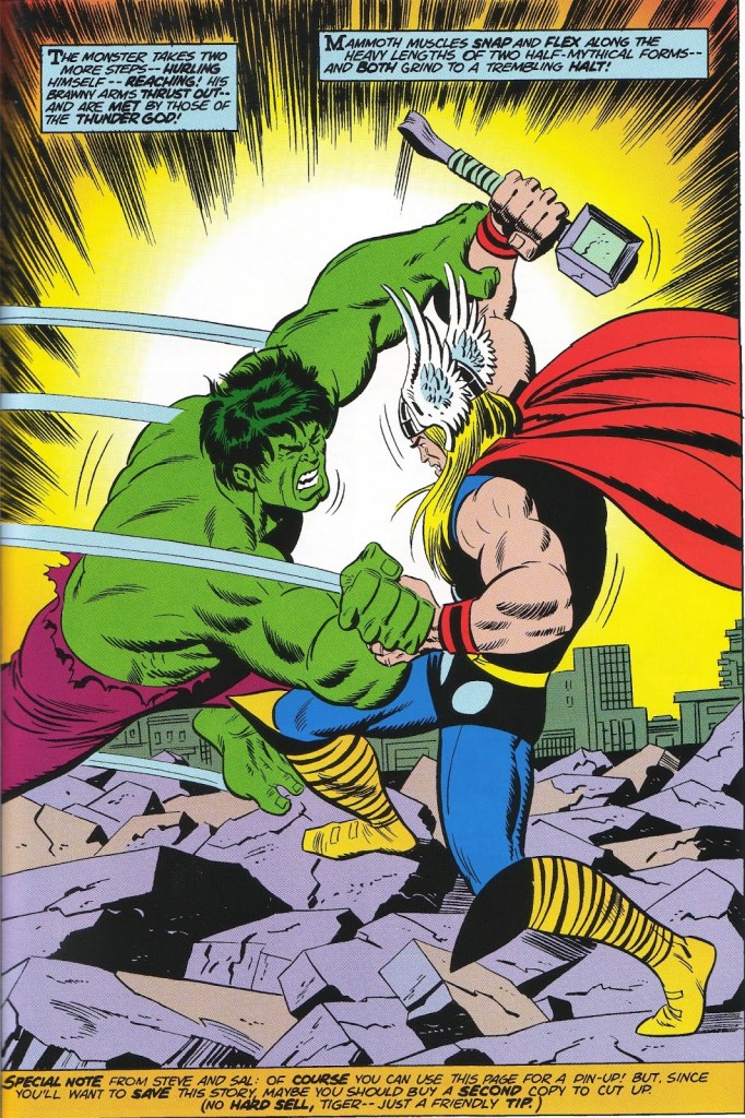 Sal’s Spider-Man was very much, well, both amazing and spectacular – he had a chance to work for both main titles for the character. He pencilled many stories for the Avengers and had a long stint on Rom, Spaceknight. One of his most recognizable works was on The Incredible Hulk, in which he was on and off (but mostly on) for more than ten years. There, Sal had many chances to use his almost trademarked “guy being thrown back by a punch”.